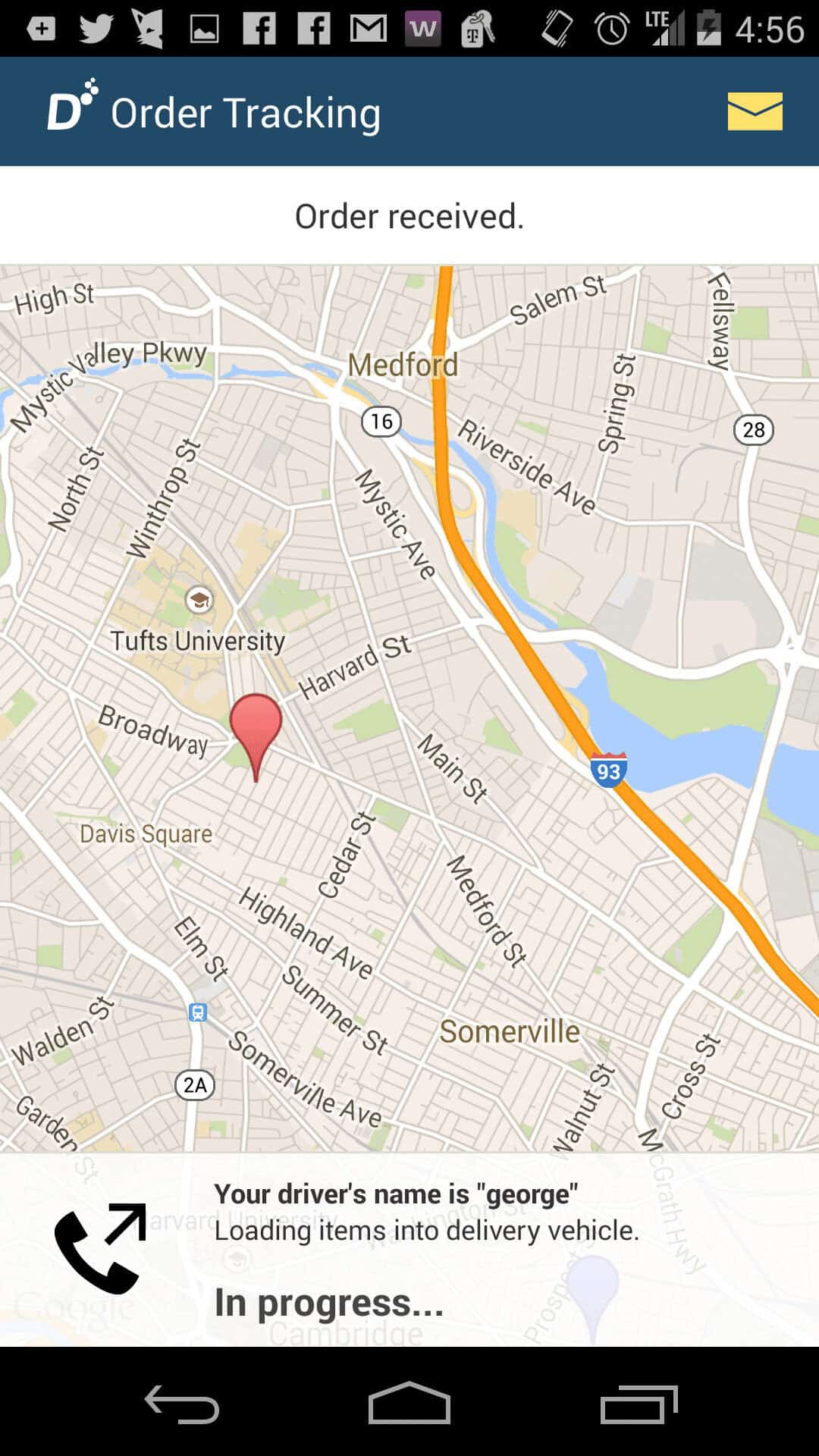 After you place your order, you can actually track the order —like literally —all the way from the greeting with your driver, to him loading the delivery vehicle, all the way to seeing which route he’s taking on a map. When the driver gets there, they’ll call you and let you know they’re there. Pretty nifty stuff.