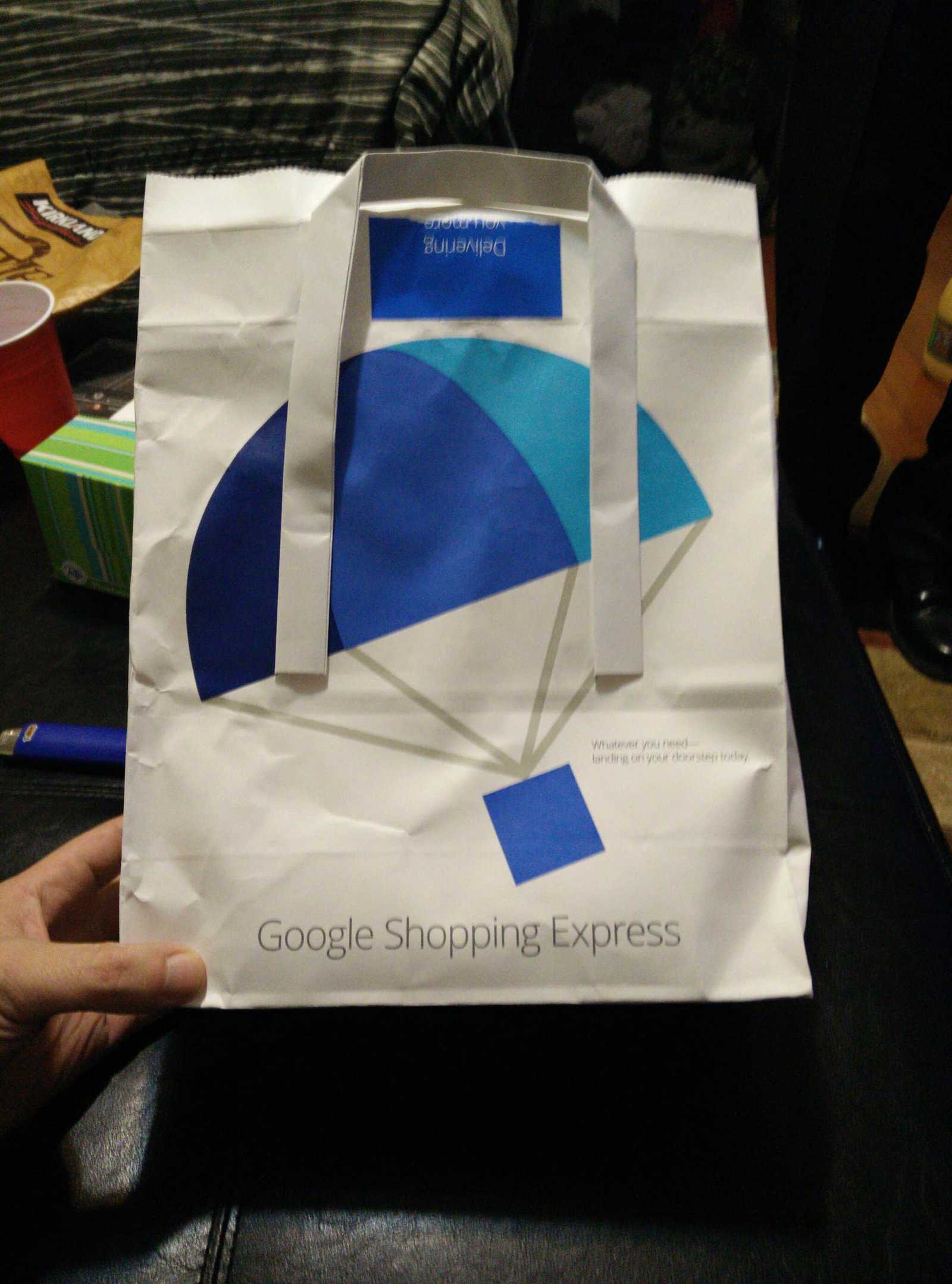 Each store has it’s own Google Shopping Express fulfillment station. A store operator receives the order on his Nexus 5, kindly provided by Google. The store operator picks the order and packages the contents of the order in a separate Google Shopping Express bag or box. The delivery driver shows up at the store, picks up your order and makes his way to your home.