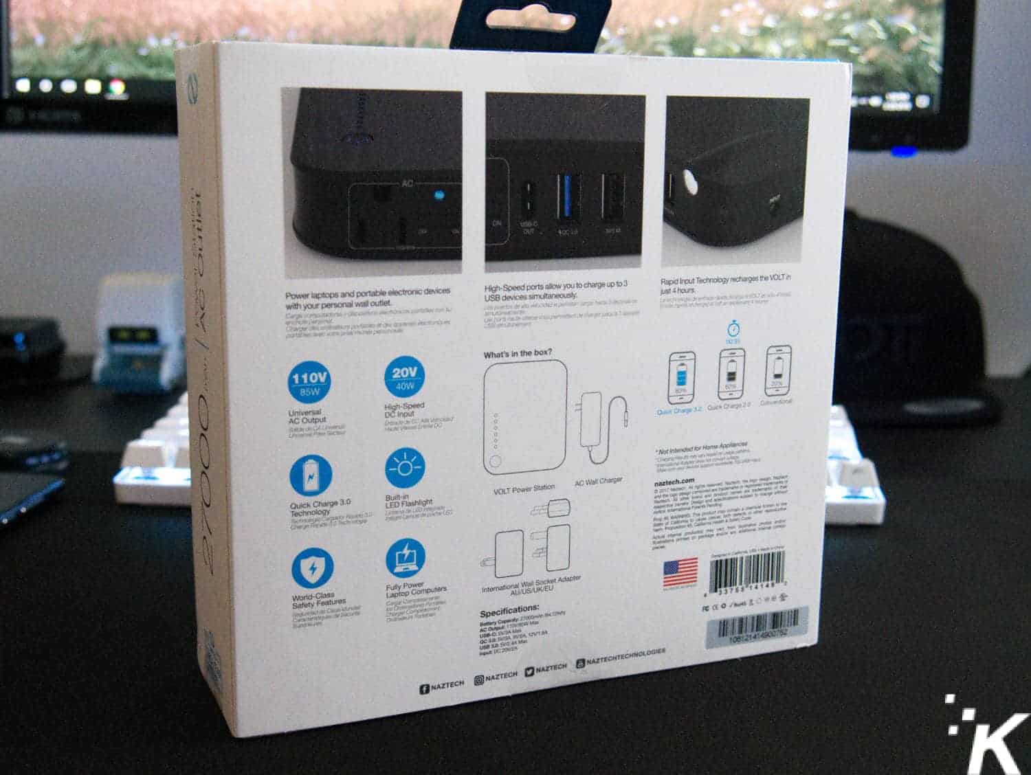 I’ve got a fairly extensive collection of battery packs, ranging from pocketable to backpack-stowed, but one thing I didn’t know I was missing until I had it in my hands was an AC-socket. This VOLT Power Station from Naztech has a whopping 27000mAh battery, USB-C, a Qualcomm Quick Charge 3.0 port, a LED-flashlight, and an insane AC-socket.