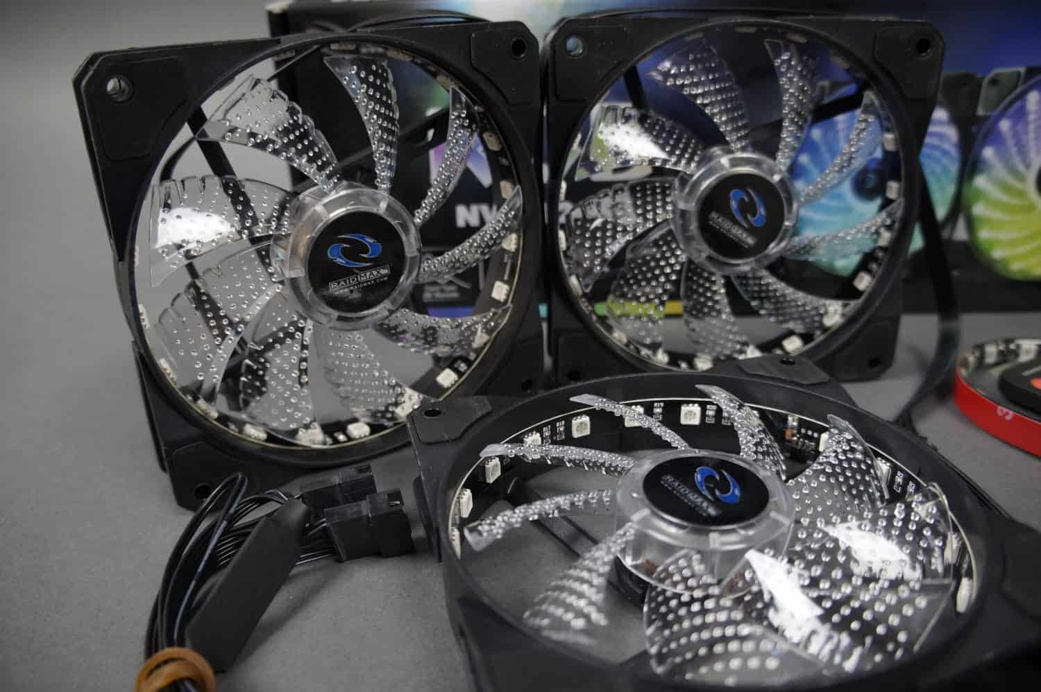 Raidmax also sent over a pack of their NV-A12OR3 fans and their RGB strip for review; these are RGB with an included RF controller. The colors are pretty good, they’re quiet and push a fair amount of air. They’re MOLEX powered and the RF controller is proprietary. I’d like to see new fans to include one of the common RGB controller standards such as ASUS AURA, Mystic Light, etc. That said, they work perfectly well as case fans and are at a competitive price point.