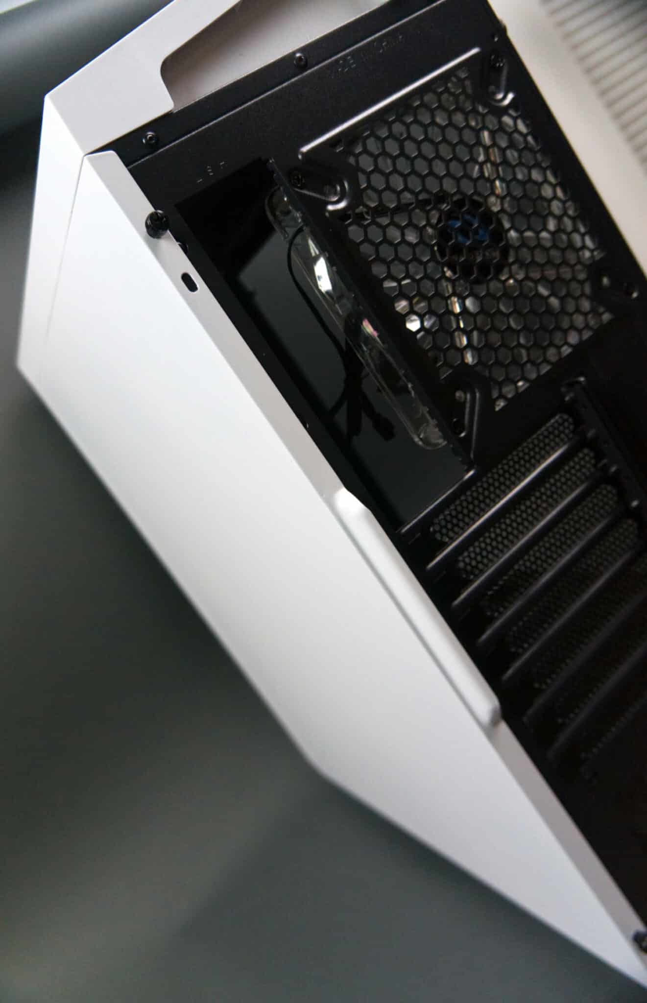 There’s lots of space to work inside, and my Crosshair Hero VI WiFi and Radeon Fury X had no issues with clearance. I really like how the PCI-E cover slides back down to cover up the usual hole, both for thermal and aesthetic reasons. If I’d needed to mount a reservoir or pump inside, there is plenty of space between the motherboard and the front of the case, however, there aren’t any pre-drilled mount points. Again, this probably won’t affect most of the target market.