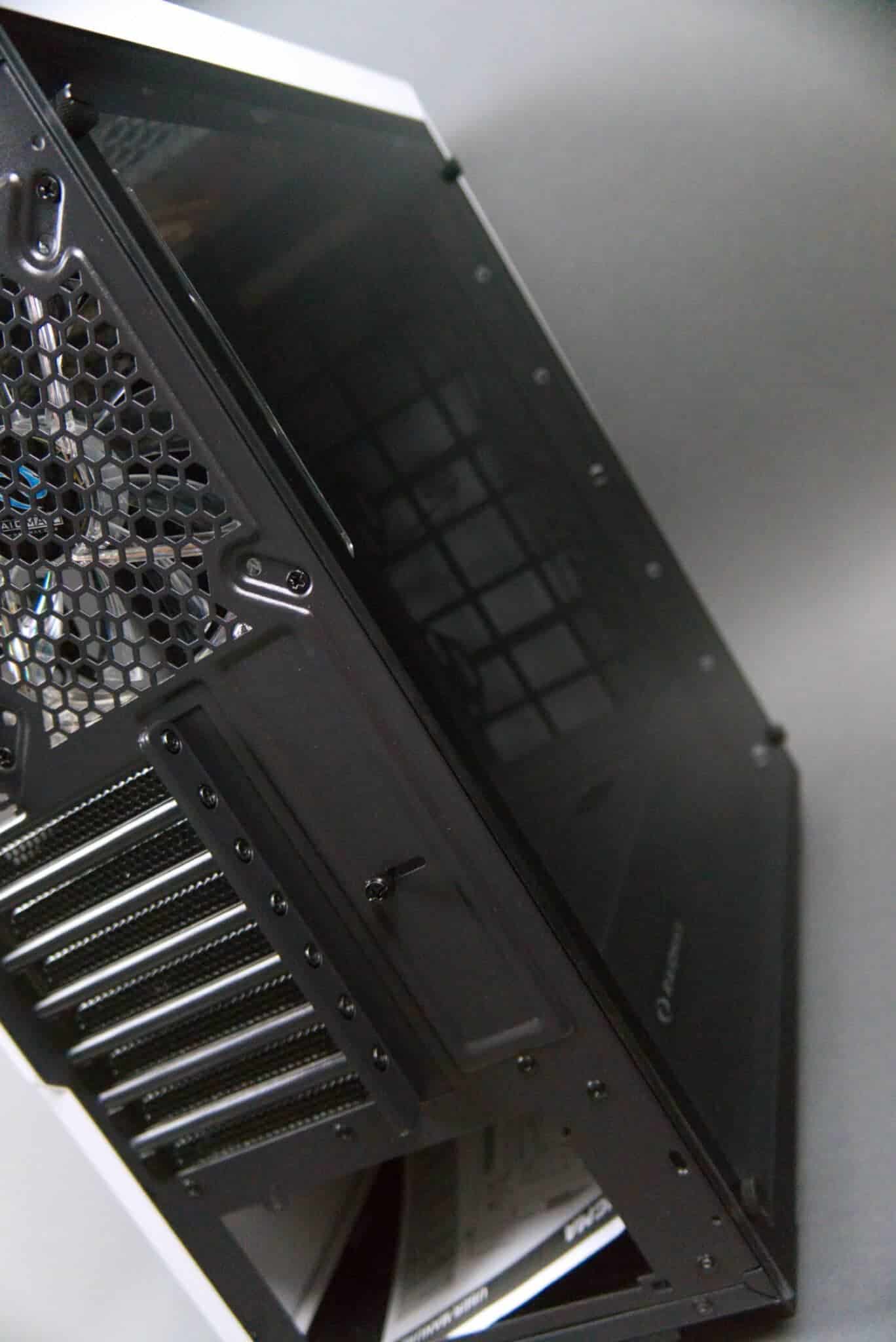 From the top panel with its brushed aluminum inset, and I/O ports, the case just draws your eye to it through the non-parallel lines everywhere.