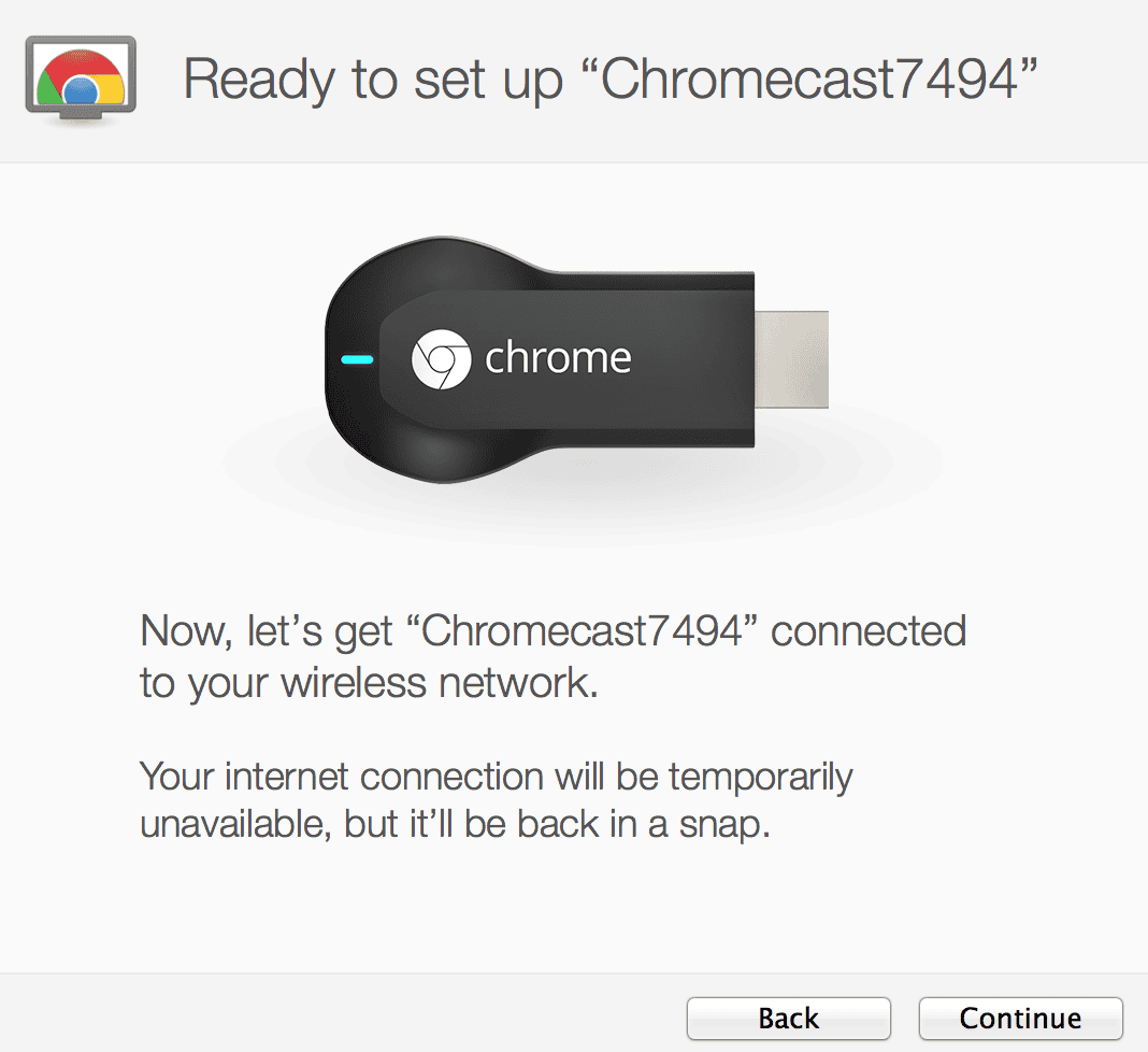 Once plugged in, a series of blinks will start flashing. Next, the setup screen appears with a certain ID code. You’ll have to visit from either your phone or a laptop to set this up with your Chromecast.